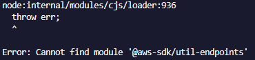 1) Cannot find module '@aws-sdk/util-endpoints'