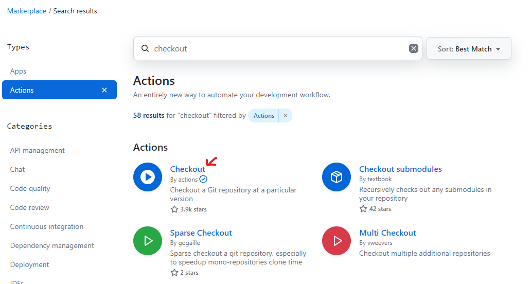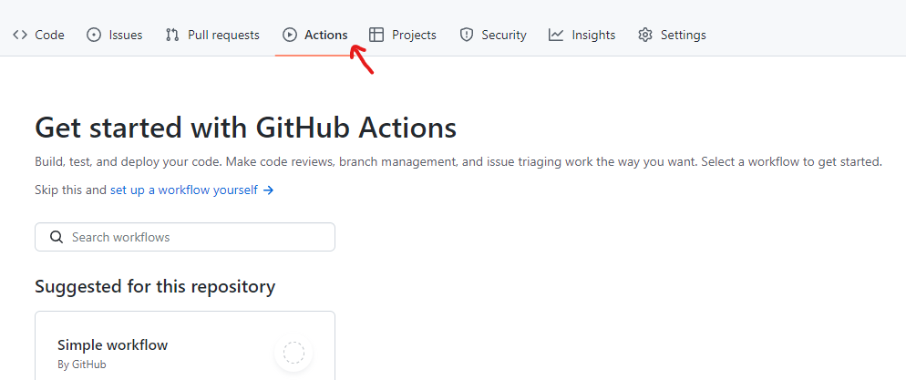 ๊นํ๋ธ ๋ ํฌ์์ Actions ํญ์ผ๋ก ์ด๋ํ๋ค.