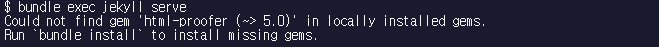 Ruby ์ค์น๊ฐ ์๋ฃ๋๋ฉด, Jekyll๊ณผ Bundler๋ฅผ ์ค์นํ ์ฐจ๋ก์ด๋ค.